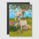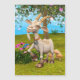 Renderização em 3D de uma feliz cabra de desenho animado em um passado de jardim de fantasia