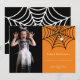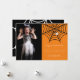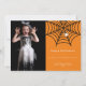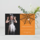 Feliz Halloween! Celebre a noite mais assustadora do ano com este simples cartão de foto moderno branco de aranha e teia, com fundo laranja.