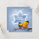 Esta design de férias apresenta dois pássaros sentados em um galho de árvore com carga de neve vestindo um kippah e cachecol com neve caindo no fundo. O texto "Happy Hannukah" na tipografia branca moderna na Estrela de David. #hanukkah #chanukah #feriados #sazonal #festivo #inverno #neve #pássaros #cachecol #boné #judeu #moderno #bonitinho #trendência #tendências #estilo #na moda #popularidade #design #cartas #cartas #estacionário #saudações #cartões