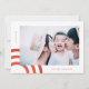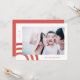 Cartão de feriado mínimo e feliz apresenta um arco-íris cor-de-rosa festivo e vermelho e um texto simples de Feliz com nome e fotografia.