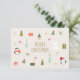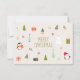 Cartão de natal divertido com símbolos das férias como árvores de natal, pinguins, presentes e sagrados.