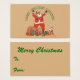 Ilustração vintage de design de Natal com um Papai Noel alegre com sua longa barba branca e usando um chapéu. O Papai Noel está de pé com os braços para cima e brinquedos infantis (cavalo, boneca, palhaço e uma bola) ao seu redor gritando Feliz Natal a Todos!
