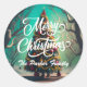 Feliz Natal personalize os autocolantes redondos com o fundo da árvore de Natal.