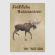 Uma pintura digital com "visual retrô" de um alce macho (Alces alces) sobreposta a uma imagem de papel ou pergaminho antigo. Texto em alemão que diz "Fröhliche Weihnachten" também aparece. Adicione seu próprio texto adicional.