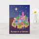Um cartão de Natal alegre com a saudação, Alegria de la Navidad ("Alegria de Natal" em espanhol), com um céu estrelado, os três sábios em seus camelos, e Joseph, Mary e um fazer burro se dirigem para a cidade colorida de Belém. As letras, a Alegria de Natal e as estrelas estão pintadas com efeito ouro (e não com folha de ouro). Um design midiático de Judy Adamson.