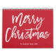 Feliz Natal, calendário simples de paredes brancas e vermelhas, com texto que pode ser alterado na página de cobrir e fotos que podem ser trocadas por cada mês do ano. Fotografia © Storytree Studios, Stanford, CA