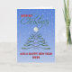 Esta árvore de natal é feita de tacos de golfe, tocada por uma bola branca de golfe. O fundo é azul, com uma dispersão de flocos de neve em queda. Você pode editar a segunda parte da saudação "E um FELIZ ANO NOVO" e o ano "2030" A mensagem dentro também é editável, ou você pode usar o padrão "Desejando um cheio de alegria e felicidade na temporada de feriados".
