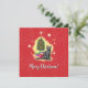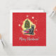 Esta é uma bela design de Natal com um vibrante cheio vermelho de fundo de estrelas e minúsculos flocos de neve e com um gato bonito em frente a uma árvore de Natal. Envie suas vibrações amáveis, confortáveis e celebrantes para seus entes queridos!