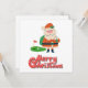 Golfe Feliz Natal com Papais noeis no campo de golfe Cartão o espírito do Natal representado por um homem velho e solteiro com barba branca que está vestida de terno vermelho e entrega presentes a boas crianças.