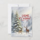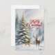 Feliz Natal com Stag e Deer Greeting Card com cena de inverno com árvores de abeto e neve na montanha.