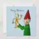 Elf e Robot do Workshop de Papais noeis em um Cartão de Natal. Personalize o texto no cartão de Natal.