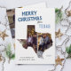 Você está orgulhoso de ser um texano, então envie um pouco de orgulho do estado nesta temporada de festas com esta duas fotos de feliz cartão de festas apresentando texturas em azul escuro e claro e acentuado com flocos de neve. Personalize com sua própria mensagem de alegria, localização, ano, seu texto de nome de família e duas de suas fotos favoritas. Para ajustar suas fotos para melhor posicionamento dentro da forma do Texas, use o link "personalizar mais", selecione a foto nas camadas e use a ferramenta Recortar para recortar suas imagens ao ajustado. Adicione mais duas fotos de retrato e personalize o texto no verso para sua própria minibag letter e mova o anúncio embrulhado em um e deixe seus amigos e familiares saberem seu novo endereço.