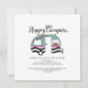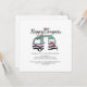 Feliz acampamento na época de inverno, anunciando para uma família na estrada para o feriado. Câmera bonita, com luzes de cordas e neve, e urso polar em um suéter de pescoço de tartaruga. Para a sua família e amigos. Altere o texto como quiser.