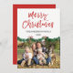 Feliz Natal, Garland, Cartão com fotos da Família Letra Script. A foto e o texto deste script de pincel com letra manual podem ser atualizados e personalizados com sua foto, ano e nome da família.