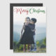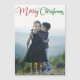 Cartão magneta de fotos de Feliz Natal com uma bela tipografia cursiva em vermelho e verde. Este cartão magnético de fotografia da família de férias moderno apresenta um belo script e o seu nome em branco sobre a imagem de sangria do cheio.