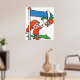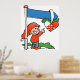 Um feliz elfo de natal pendurado um coração num cartaz posta para o polo norte. Esta design parece realmente eficaz nestes Poster