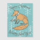 Aconchegante decorativo design de raposa de Natal feliz em fundo azul.