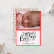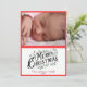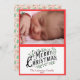 Um cartão de Natal brilhante e alegre tem sua foto favorita e "Feliz Natal" com folhas e bagas sagradas ao seu redor no fundo. O verso da carta tem um padrão de folhas verdes ocas com bagas vermelhas. Adicione seu nome e data e você tem o cartão de Natal perfeito para fotos de feriado!