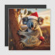 Koala australiano sentado numa árvore vestindo um chapéu de santa. Este coala peludo é um nativo da Austrália que eles são facilmente reconhecíveis pelo seu corpo escondido, sem caudas e cabeça grande, com orelhas redondas, lisas e nariz grande e em forma de colher.