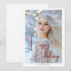 Este cartão de Natal glamoroso de Hollywood é perfeito para um modelo ou atriz que é a estrela do show. Feliz Natal escrito em uma assinatura de celebridade com rabiscos manuscritos para um visual de foto famosa. Script vermelho elegante sobre sua fotografia vertical favorita de cabeça.