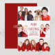 Este cartão de Natal giro e giro apresenta um layout moderno de 5 fotos da família em um fundo branco com tipografia vermelha. Este belo cartão fotográfico apresenta a sua própria colagem fotográfica em torno da sua mensagem e do seu nome de família em verde.