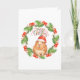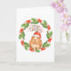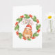 Este cartão de Natal bonito apresenta uma cobaia aquarela sentada dentro de uma coroa vestindo um chapéu de Papai Noel, com as palavras "Feliz Natal" acima da cabeça. A saudação de dentro é um modelo, então ela pode ser removida e substituída por sua própria saudação!