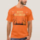 Celebre o Dia das Bruxas em estilo assustador com esta camiseta laranja vibrante "Feliz Dia das Bruxas". Apresentando gatos pretos inquietos, abóboras entalhadas, árvores assombradas, e um design de Halloween festivo, é perfeito para festas, truques ou tratamentos, ou apenas mostrando seu espírito de Halloween. Um dever para qualquer um que ama a estação assustadora!