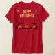 Celebre o Dia das Bruxas em estilo assustador com esta camiseta "Feliz Dia das Bruxas" laranja vibrante. Apresentando gatos pretos inquietos, abóboras entalhadas, árvores assombradas, e um design de Halloween festivo, é perfeito para festas, truques ou tratamentos, ou apenas mostrando seu espírito de Halloween. Um dever para qualquer um que ama a estação assustadora!