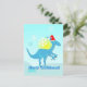 Feliz Natal que cumprimenta o cartão do dinossauro. Um dinossauro azul pequeno bonito de Parasaurolophus dos desenhos animados com um chapéu vermelho do papai noel em uma paisagem da neve do inverno com neve lasca-se caindo do cartão do céu. Este "Feliz Natal!" o cartão do dinossauro dos desenhos animados é inteiramente customizável! Mude o texto "Feliz Natal!" e adicione seus imagens & textos! Um cartão bonito dos dinossauros dos cartões de natal!