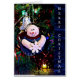 Feliz Natal Snowman Segurando Cartão Floco de Neve