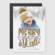 Feliz Natal Y'All Photo Artsy Script Um estilo de manutenção para enviar saudações festivas. Adicione uma foto divertida de natação do Chiristmassy, que está acoplada à tipografia do conjunto artístico. Basta substituir a foto pela sua e personalizar seus nomes na parte inferior.