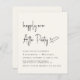 Convite à recepção de casamento de creme leve e orçamental com "Feliz Festa de Sempre" em um roteiro moderno de chic e seus nomes em tipografia serif clássica. Este papel semirbrilhante do orçamento é semelhante em peso ao papel fotográfico; uma versão tradicional de estoque de cartão também está disponível (mensagem para o link).