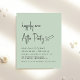 Convite de recepção de casamento verde de sábio amigável, com "Feliz Sempre Depois da Festa" em um roteiro moderno de chic e seus nomes em tipografia serif clássica. Este papel semirbrilhante do orçamento é semelhante em peso ao papel fotográfico; uma versão tradicional de estoque de cartão também está disponível (mensagem para o link).