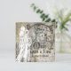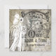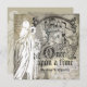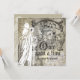 Feliz nunca após uma vez wedding convites em nosso quadrado popular de 5,25 x 5,25 polegadas. Estes convites bonitos do casamento do design do vintage são fáceis de personalizar com suas cerimónia e informação da recepção antes de pedir. Caracteriza um casal do casamento da silhueta com buquê e o castelo do estilo do conto de fadas com texto que lê "uma vez" em um ouro do vintage projetado com fundo silenciado do balão de ar quente. Seu casamento do conto de fadas começa com estes convites bonitos do casamento vintage.