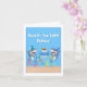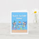 Faça um salto com este cartão de 8 anos! Um tubarão bebê alegre tira uma mordida divertida de um vibrante número "8" empoleirado em um brilhante bolo de aniversário oceânico. Dois tubarões-fralda balanceam o bolo em uma banca ao estilo da prancha de surfe, todos colocados em uma cena submarina, cheia de bolhas lúdicas e criaturas agudas do mar como um polvo sorrindo, peixe-palhaço e tartaruga marinha.