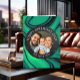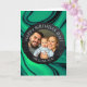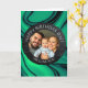 Um cartão com fotos sentimental. Um cartão de aniversário para o qual você pode carregar sua foto favorita, junto com texto, "Pai de aniversário feliz" e "nós te amamos." Fundo abstrato verde e preto.