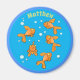 Estes adoráveis peixes dourados são desenhados num estilo brilhante de desenho animado rodeado por bolhas sobre um fundo azul. Excelente para o amante dos peixes dourados!