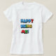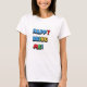 Camiseta branca "Happy Being Me" com letras brilhantes de cor arco-íris, divirta-se sendo você.
