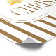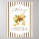 Arte de Natal clássica com "Feliz Natal" com uma ilustração ouro de arco holly sobre ouro listrado e fundo branco. Impressão festivo perfeito para decoração sazonal elegante.