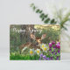 Envie este cartão da estação da primavera para sua família e amigos. Este cartão apresenta uma saudação em letra cursiva na frente e no verso há uma saudação que você pode personalizar com suas próprias palavras. Este cartão plano vem em uma variedade de cartões. Eu projetei este cartão a partir de uma fotografia de um filhote de veado nos bosques e adicionei uma sobreposição de grama verde e flores de primavera. Um cartão de primavera perfeito para suas necessidades sazonais.
