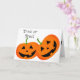 Cartão de saudação de Halloween com dois abóboros felizes.