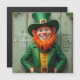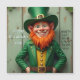Um duende sorridente no tradicional jardim verde com um sorriso largo espalha boa alegria. O muro de madeira rústico no fundo, decorado com shamrocks e um ditado irlandês corajoso, dá ao motivo uma atmosfera festiva e encantadora. Perfeito para Ruas, saudações e decorações do dia de Patrick.