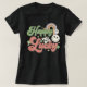 Feliz Rua Sortuda. Camiseta feminina do Dia de Patrick. Camarões-shamrocks e rabiscos do arco-íris.