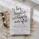 Nosso janto de ensaio de casamento moderno e casual ou convites de festas de cocktail em preto-e-branco "para amar, rir alegremente para sempre" em letras negras tipografia destacada com confete multicolorido. Personalize com seu ensaio de cerimônia e ensaie detalhes de janto abaixo. Cartões invertem para um padrão de confete correspondente em preto contrastante. Inclui espaço para a época do ensaio e endereço da igreja ou do local.