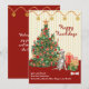Feliz Feriados O Cartão de Natal de Wolfhound Irlandês Festivo e elegante. Os ornamentos de aquarela pintados à mão, em uma árvore ponteada em estrela e presentes especiais, até mesmo um osso para o cachorro envia uma mensagem de feliz aniversário. Este Cute Irish Wolfhound está vestindo seu chapéu especial de Papai Noel vermelho. O fundo da design é uma faixa amarela e cremosa com uma terra de estrelas cintilantes de ouro. Todo o texto é editável, do "Feliz Howlidays" à mensagem de Natal com seu nome de família e cão. Use a opção PERSONALIZAR para torná-la sua. A parte traseira do cartão é um vermelho correspondente à garland e uma mensagem de feriado editável. Você encontrará este belo cartão de Natal junto com muitas outras raças de cães em nossa coleção de HOWLIDAYS FESTIVOS FESTIVOS FELIZES, em nossa loja. Mensagem se precisar de ajuda.