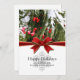 Felizes Feriados de inverno coberto de neve Modelo Flat Cards é uma modelo para você personalizar com seu próprio cartões de natal com seus nomes familiares ou funcionários de negócios. Morangos e ramos verdes, cobertos de neve com uma imagem de fita vermelha para amarrar tudo. Essas placas achatadas saudáveis também são perfeitas para cartões de natal corporativos e de pequenas empresas.