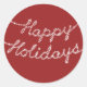 O adesivo Feliz Feriados, escrito em luzes cintilantes sobre fundo vermelho de amora, acrescenta um toque festivo a pacotes, presentes ou envelopes.