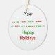 Aqui está uma Enfeites de natal divertida para Hams enviar ou receber. Colocamos "Felizes Feriados" no Código Morse na frente. Para ajudar a ser mais festivo, nós decoramos os dits e os dhs para que seus grupos de letras sejam vermelhos ou verdes. Abaixo temos a transcrição do código no texto. Na parte de trás você pode colocar um indicativo de chamada, nome ou qualquer coisa que você quiser.