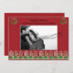 Cartão com fotos de feriado horizontal. A arte original de casas de retas de tijolos vermelhos decoradas para os feriados pode ser personalizada e a foto substituída por uma de suas casas.
