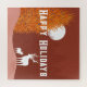 Feriados felizes tipografia em fundo temático de férias em marrom, que inclui árvores do Fir de Natal, lua e renas.